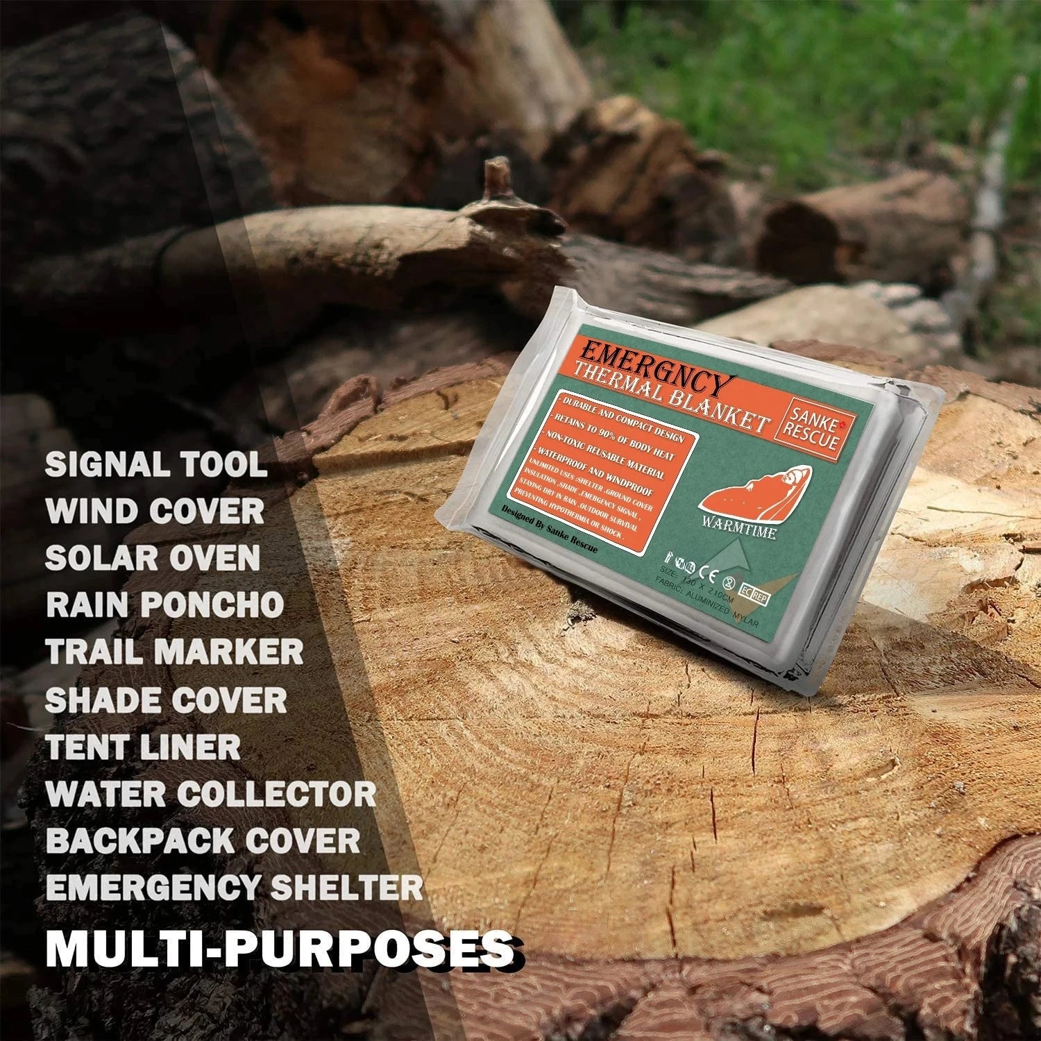 Perfect for hiking, running, camping, outdoors, survival, first aid. Can be used as rain poncho, backpack cover, emergency tent, signal tool, sleeping bag liners ,etc.
